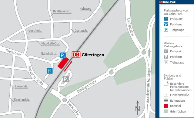 Der DB BahnPark Parkplatz Bahnhofstraße P1 in Gärtringen bietet Ihnen eine praktische Parkmöglichkeit direkt am Bahnhof Gärtringen.